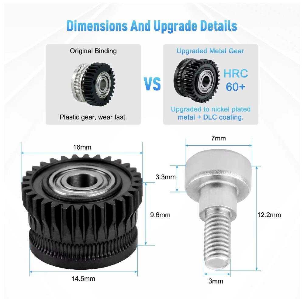 Engranaje de transmisión de filamento completamente metálico para extrusora con Recubrimiento DLC niquelado Alta dureza Resistente al desgaste.