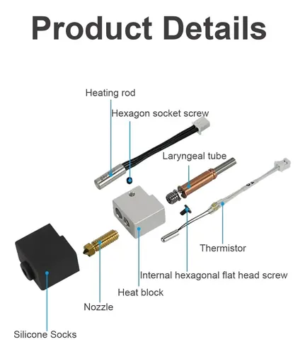 Diseño eficiente: Reduce el riesgo de obstrucciones en la boquilla, mejorando la calidad de impresión y la fiabilidad del extrusor.