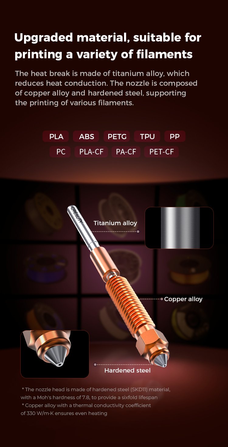 hotend Especificaciones técnicas del para la serie K1 de Creality: