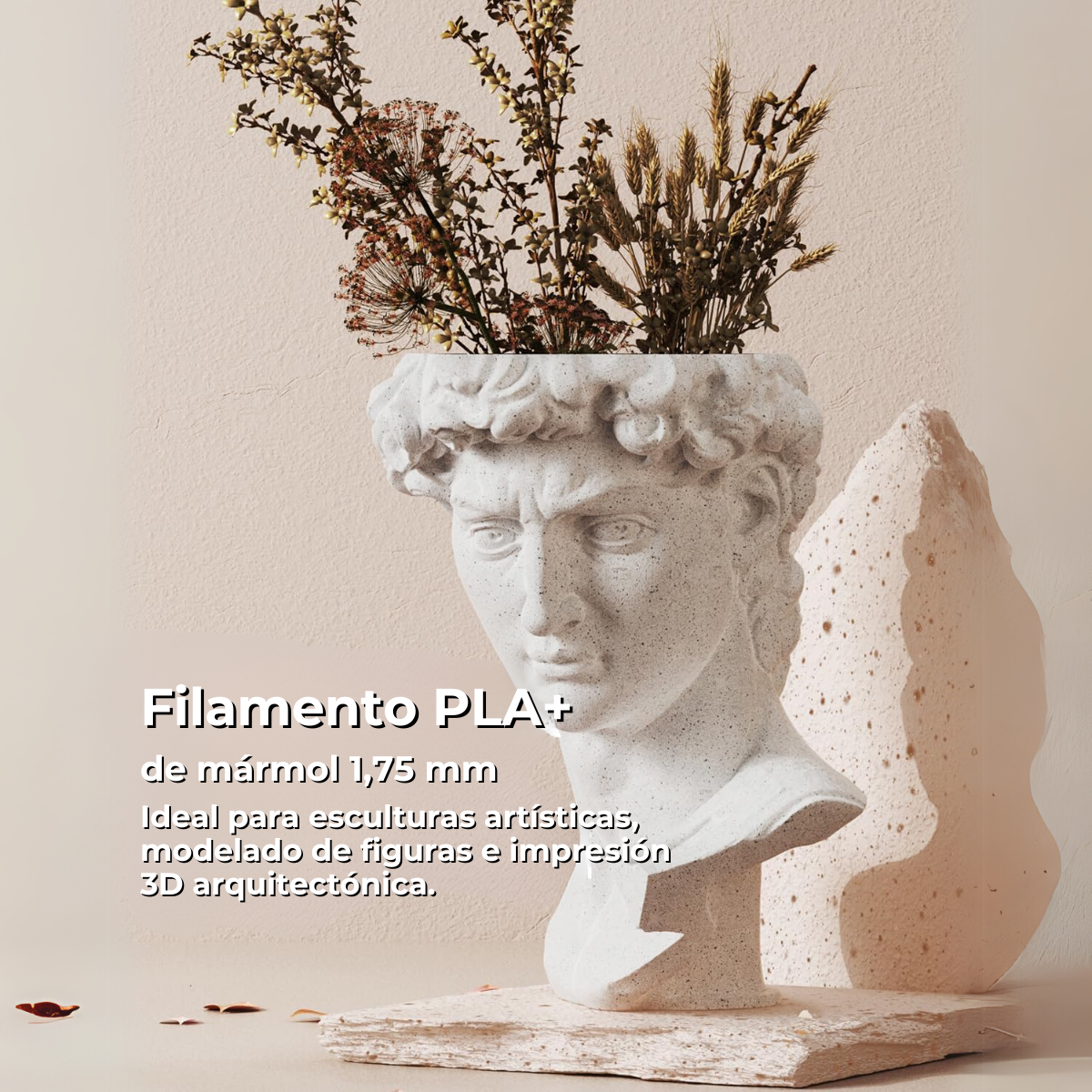 Acabado pétreo: Textura mate moteada, ideal para estatuas y modelos arquitectónicos.