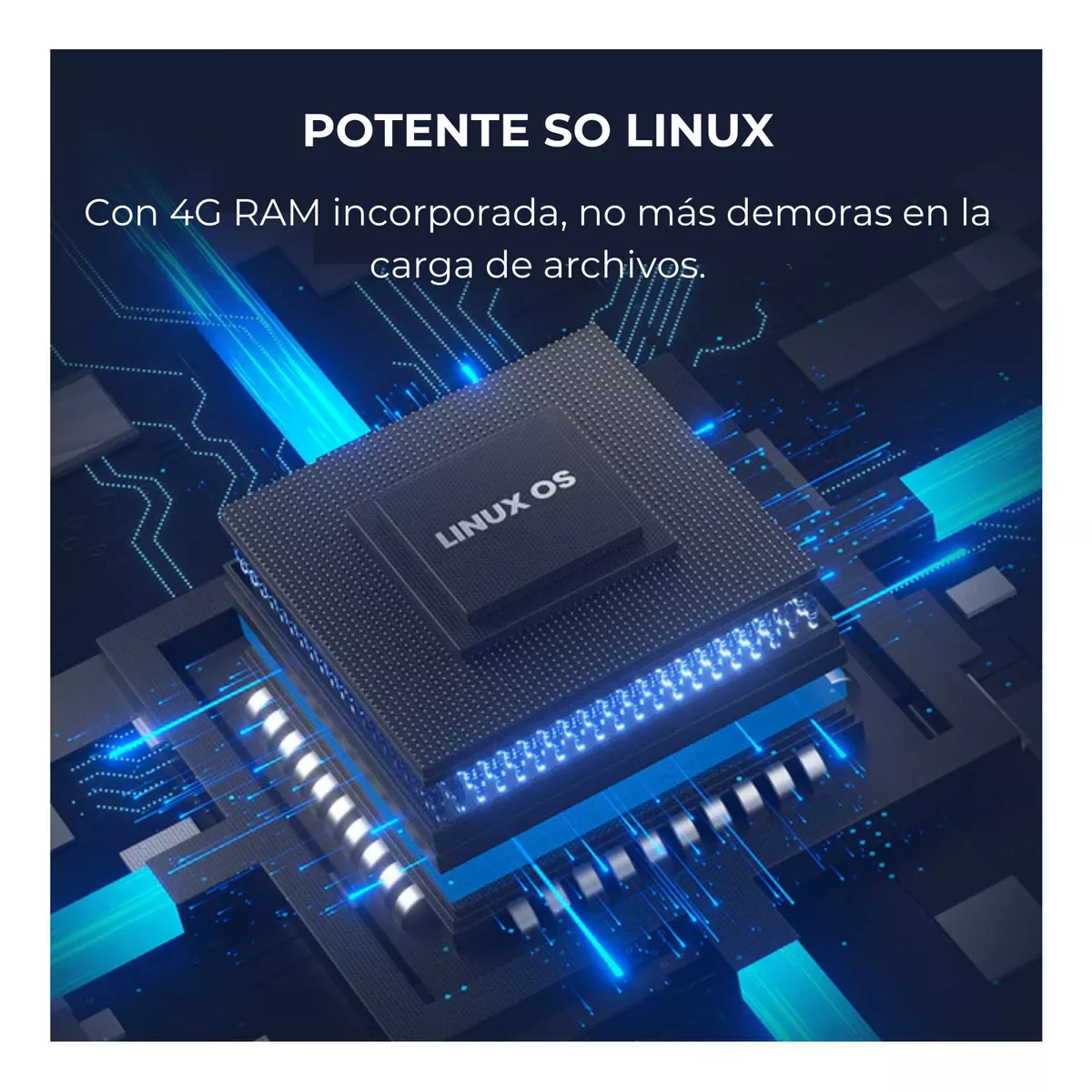 El nuevo sistema operativo Linux con 4G RAM incorporada admite transferencia Wi-Fi, con una velocidad de transmisión de 6-10 Mbps. Además, es compatible con redes 2,4G y 5G, lo que facilita la transferencia de archivos desde su computadora o dispositivo móvil.