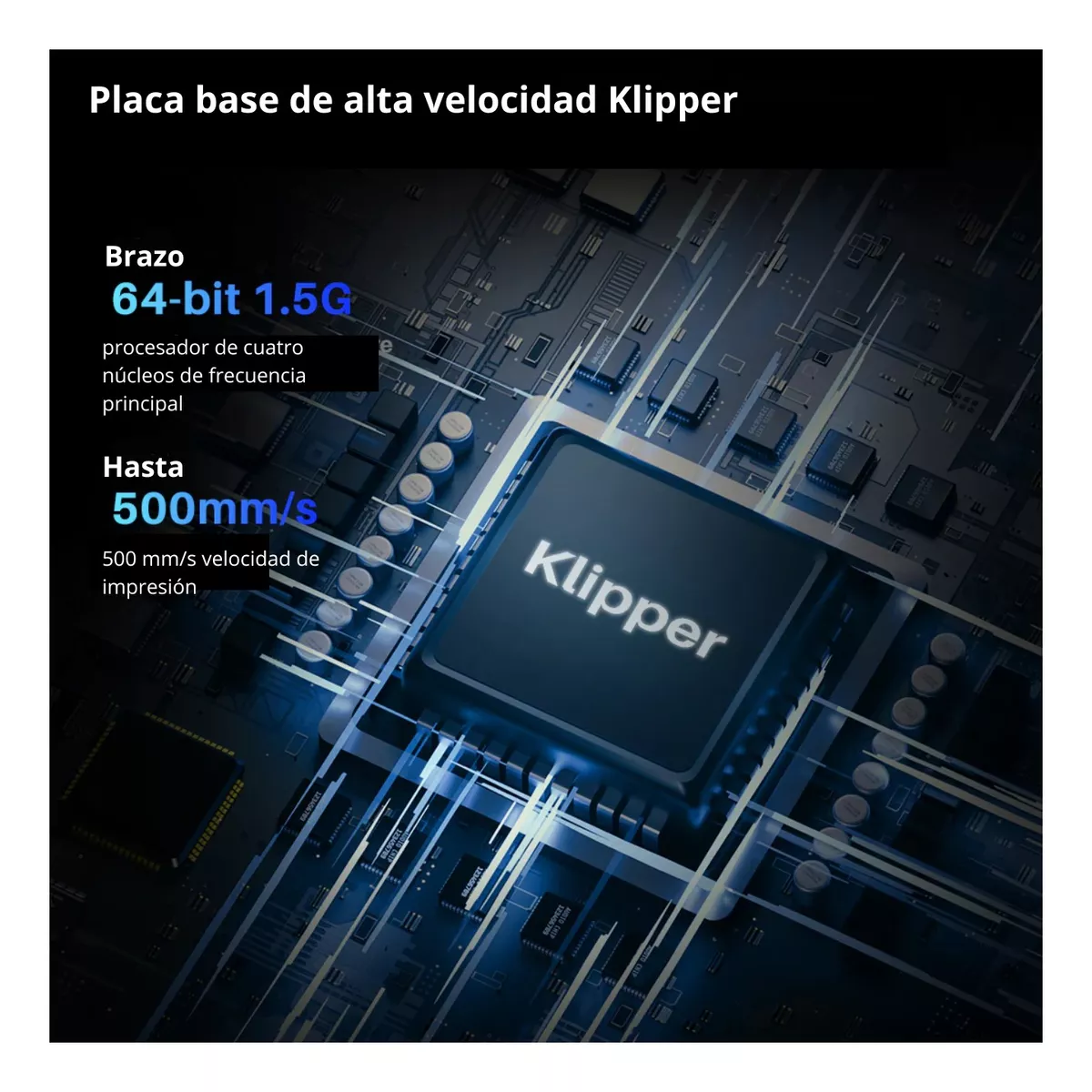 Neptune 4 Plus adopta una placa base Klipper y un procesador de cuatro núcleos de frecuencia principal ARM de 64 bits y 1,5G. Con el firmware Klipper preinstalado, la velocidad de impresión puede alcanzar los 500 mm/s (predeterminado 250 mm/s) con una aceleración de hasta 12000 mm/s. 8G RAM le brinda una amplia capacidad de almacenamiento para varios archivos de impresión. Además, la impresora admite la configuración de la entrada y el avance de la presión para mejorar la calidad de impresión y reducir problemas como artefactos, exudado de filamentos y manchas. Con sensores de aceleración en el eje X y el eje Y para calibrar automáticamente los parámetros de compensación de resonancia para menos vibraciones e impresiones precisas.