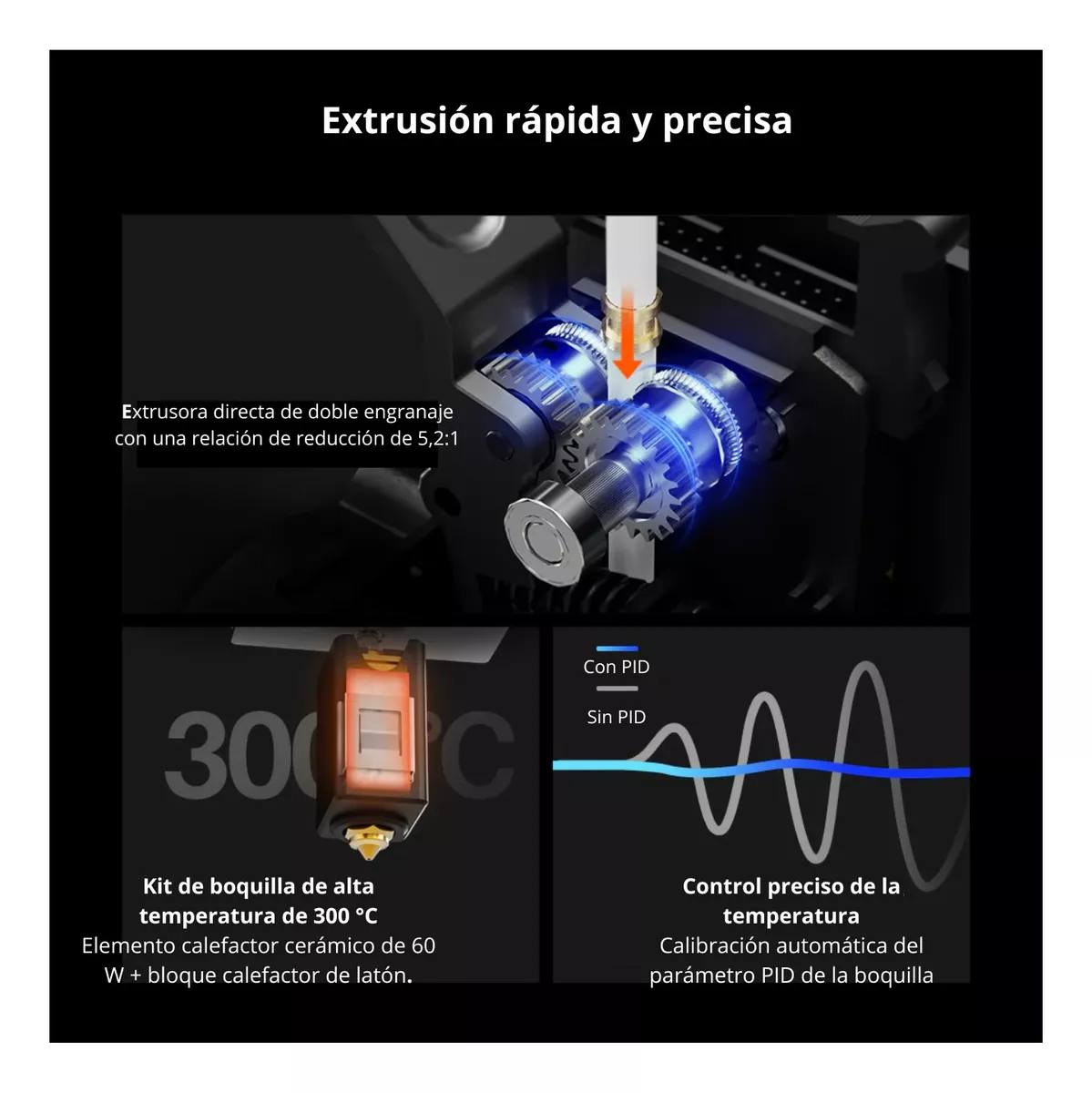 -Compatibilidad de filamentos: PLA / TPU / PETG / ABS / ASA / Nailon