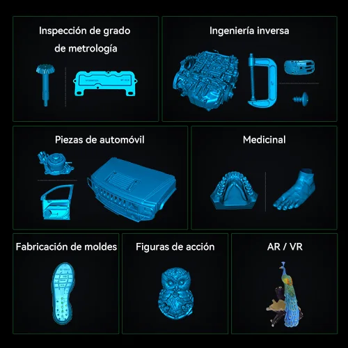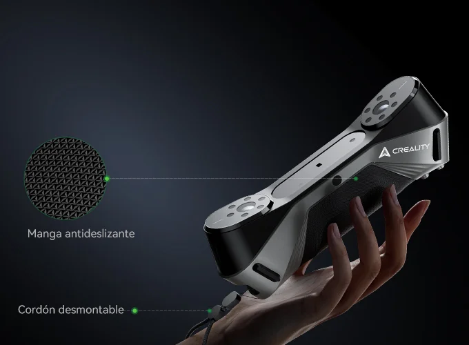 Mejora del Reconocimiento de Marcadores: 12 LED InfrarrojosSeguridad del Láser: Clase I (seguro para los ojos)Botones: MecánicaIMU: SíFormato de Salida: OBJ/STL/PLYPotencia de entrada: 12V 2AInterfaz: TypeC/USB3.0Dimensiones: 215mmx50mmx74mmPeso: 372gTablero de Calibración: Tablero de calibración de vidrio de alta precisiónEscaneo Inalámbrico: Compatible con futuros accesorios de escaneo inalámbricoSoporte del Sistema: Windows/macOSTemperatura de Operación: -10°C a 40°CHumedad de Operación: 0-90%RH[1] La precisión se evalúa en condiciones de laboratorio (el objeto de medición es un par de esferas de 100 mm) y los resultados reales pueden verse afectados por entornos operativos como la temperatura, la vibración y otros factores.