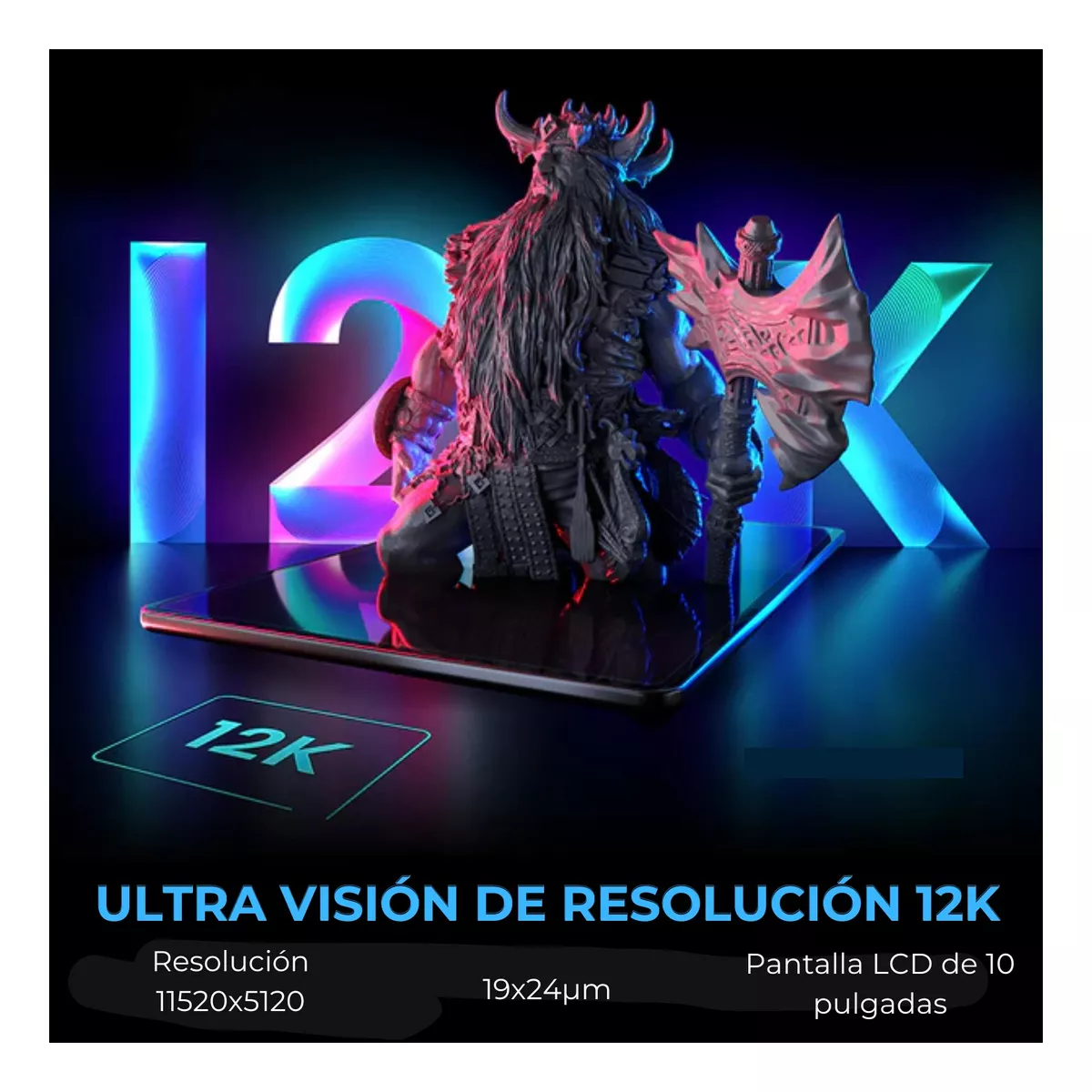 ELEGOO Saturn 3 adopta una pantalla LCD mono de 12K de 10 pulgadas con una resolución de 11520×5120 y una resolución XY de 19×24 micrones, que permite la producción de modelos complejos con excelentes detalles y una nitidez excepcional. El vidrio templado 9H reemplazable previene eficazmente rayones y daños en la pantalla LCD y prolonga su vida útil.