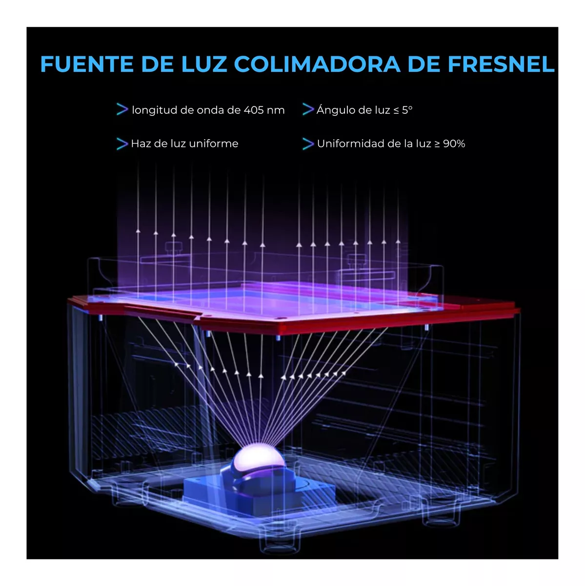 La fuente de luz COB combinada con la lente colimadora de Fresnel garantiza una exposición más perpendicular y uniforme en la pantalla, dentro de un ángulo de luz de 5 grados y un coeficiente de dispersión de luz del 0,5 % y una uniformidad de la luz del 90 %, lo que le permite imprimir modelos realmente impresionantes con suaves superficies y bordes afilados.